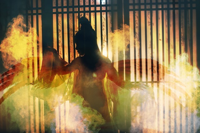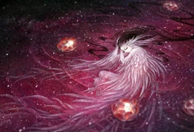 那么,姑获鸟后来是如何“黑化”的呢?传说,姑获鸟本是天帝之女,一日,她们姐妹六七人,穿上羽衣,结伴下凡游历人间,忽见一深潭,掩映在青山绿水之间,阳光透过浓密的枝叶荡漾在碧绿的潭水中。众仙女姐妹于是就脱下羽衣下水嬉戏。接着,故事就有点类似《牛郎织女》情节了:某男猥琐偷窥仙女洗澡后动心——某男悄悄藏一羽衣——姑获鸟无法飞回天上——姑获鸟被迫嫁给某男为妻——姑获鸟生下三个女儿。后来,姑获鸟十分怀念天上的生活,就趁着某男喝醉时,让他最宠爱的小女儿打听羽衣的下落。最终,姑获鸟成功在稻堆下找到羽衣,飞天而去。可是姑获鸟舍不得自己心爱的女儿,她很快又带着三件羽衣飞回来了,三个女儿就穿上羽衣跟着姑获鸟一起飞走了。