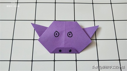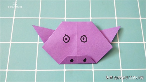 画上小猪的眼睛和嘴巴,或者贴上眼睛和嘴巴的贴纸。一只可爱的小猪就折叠好了,你学会了吗?