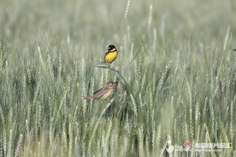 栖息在麦田的黄胸鹀夫妇。(资料图)