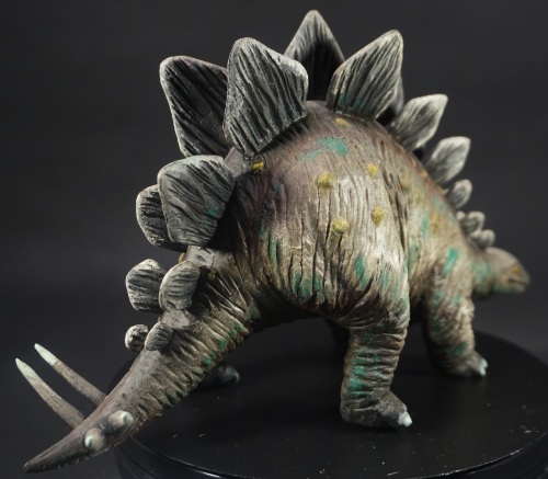 剑龙为一种巨大的草食性恐龙,是一种生存在侏罗纪晚期的食草性动物,它的背上有一排巨大的骨质板,以及带有四根尖刺的危险尾巴来防御掠食者的攻击,大约7-9米长,2.35米至3.5米高,2至4吨重。