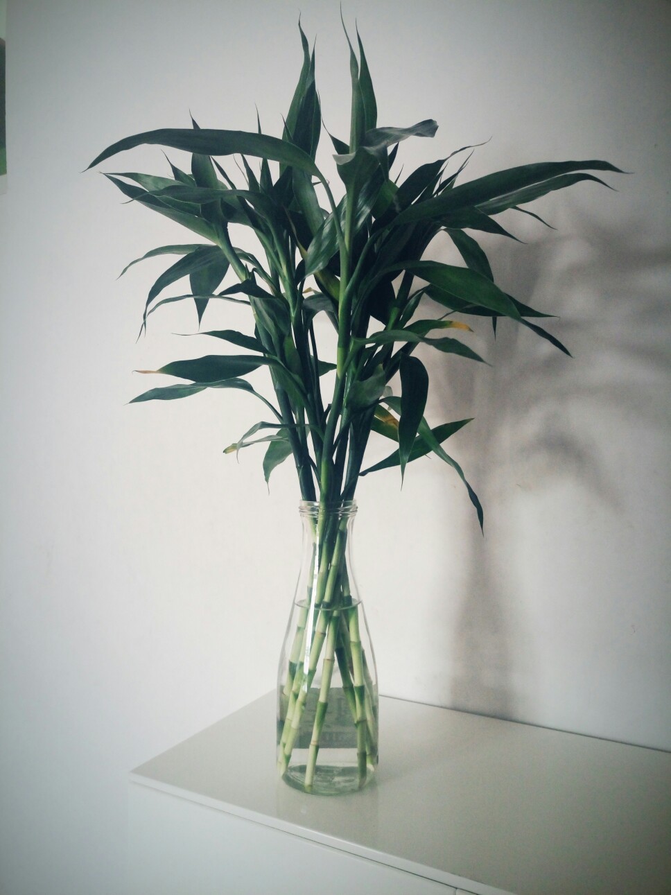 富贵竹,象征着富贵吉祥,又有着竹子的气韵。纯水培富贵竹又会显得干净清爽,但是容易黄叶。需要隔一段时间往水里面滴几滴营养液,以补充养分。
