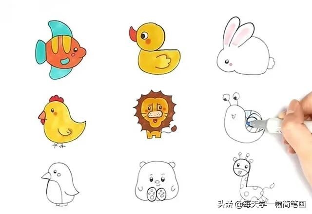 每天学一幅简笔画--1到9数字画动物简笔画步骤教程