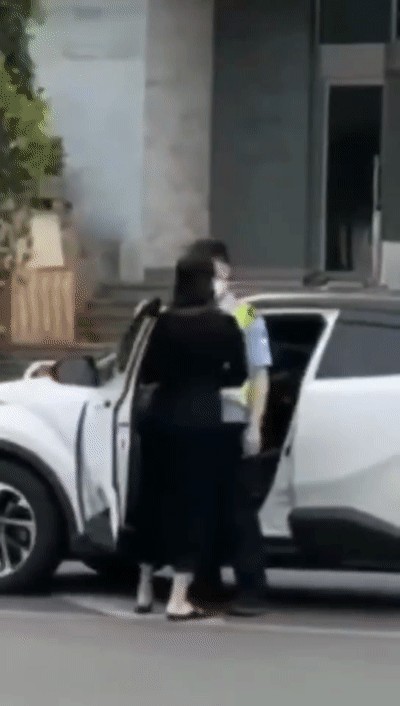 事情越闹越大,郝小姐正欲开车返回家中,却被警察堵在车门前,郝小姐顺势倒地。