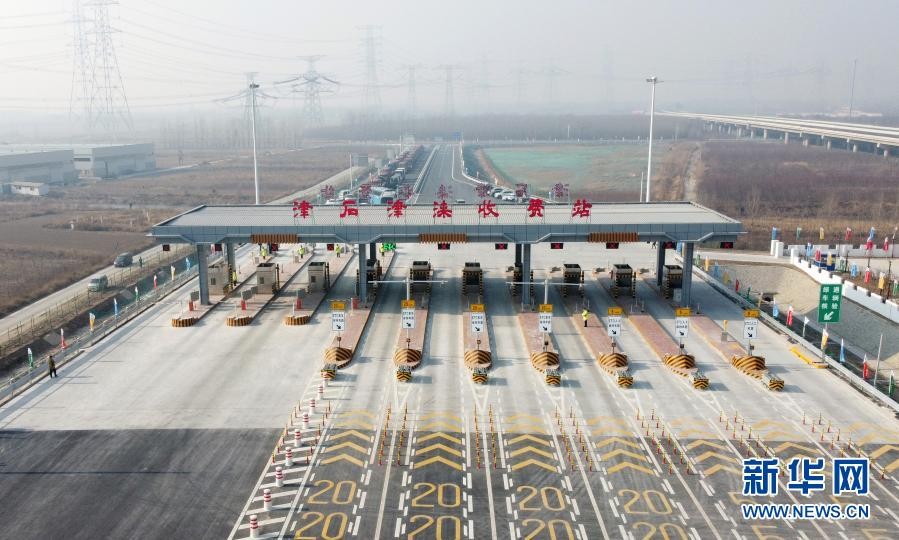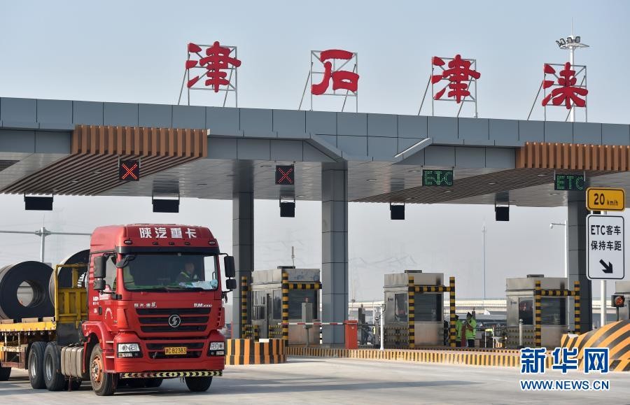 12月22日,车辆经津涞收费站驶入津石高速。 当日,天津市至河北省石家庄市的津石高速正式通车,从天津市至石家庄市的高速通行时间缩短至三个小时。津石高速的开通运营对加快京津冀交通一体化,促进区域产业结构调整,优化区域经济布局起到重要作用。 新华社发(赵子硕摄)