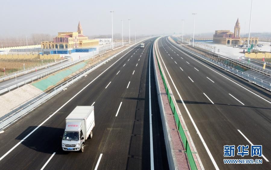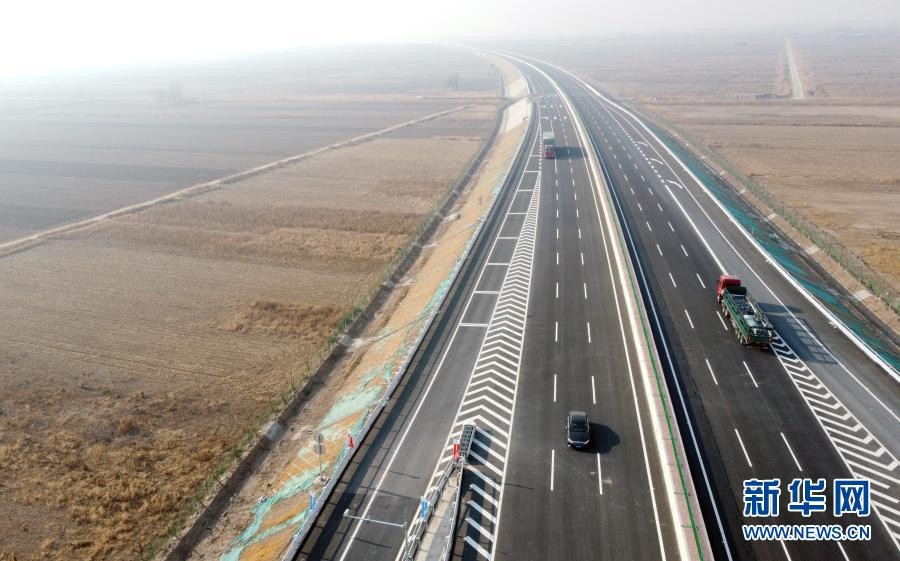 这是12月22日拍摄的津石高速(无人机照片)。 当日,天津市至河北省石家庄市的津石高速正式通车,从天津市至石家庄市的高速通行时间缩短至三个小时。津石高速的开通运营对加快京津冀交通一体化,促进区域产业结构调整,优化区域经济布局起到重要作用。 新华社发(赵子硕摄)