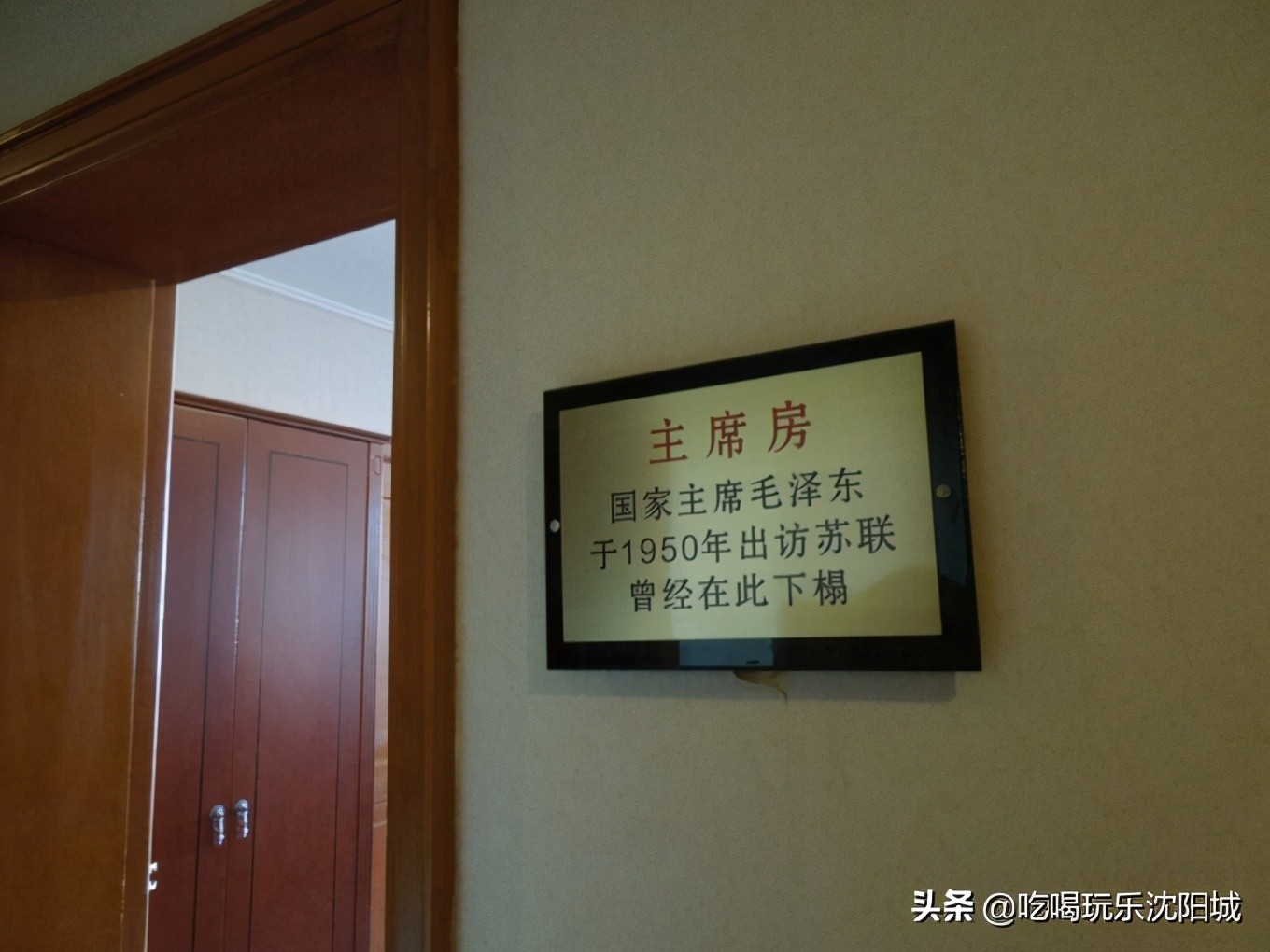 接下来, 沈阳军管会从恢复城市功能,解决粮食供应和稳定物价,处理俘虏,组织力量抢运、疏散国民党军队遗留的军事物资,做好对市民的宣传工作等方面有条不紊地开展了接管工作。一道道命令、一项项通知、一件件决定从文化宾馆发出,化作各级党组织、政府机构、广大干部和人民群众的具体行动。就这样,在沈阳军管会的主持下,一个曾经混乱的沈阳在很短时间内就变成了人民当家做主、社会秩序稳定、商品保证供应的新城市。毛主席视察沈阳在这里下榻1949年12月6日,毛主席一行访问苏联,第一次迈出国门的毛主席赶在中国的传统节日春节前,与斯大林签订了《中苏友好互助同盟条约》,并在大年初一结束了对苏联的访问,踏上归程。1950年3月1日,毛主席途径沈阳 ,对沈阳进行视察,并下榻在文化宾馆。3月1日这一天对于沈阳人民来说,是个永远难忘的日子。毛主席首先应中国医科大学校长王斌(在井冈山革命根据地时期担任过红一军团医院医生)之邀,视察了与文化宾馆仅一路之隔的中国医科大学,这所学校的前身是中国工农红军军医学校和中国工农红军卫生学校。在视察中,毛主席详细听取了关于学校发展情况的汇报。听到学校为适应工作需要,短期内培养出大量医务干部时,毛主席非常满意,他说,这个学校一向就是学制很短,就是在实践中学习,还勉励学校师生发扬革命传统,办好学校。这一天,毛主席还视察了沈阳橡胶一厂。毛主席来到生产车间与工人们亲切握手,并仔细询问了每一个生产过程;这一天,毛主席还饶有兴趣地参观了沈阳市公安局消防大队研制的喷沙消防车;在有关领导陪同下,毛主席兴致勃勃地游览了昭陵;当天晚上,毛主席观看了著名京剧艺术家秦友梅、尹月樵的专场演出。3月3日,毛主席在沈阳召开了东北高级干部会议,就我国工业化和经济建设发表了具有深远意义的讲话,把建设东北工业基地的重大任务提到全党面前。会上,毛主席说东北条件和全国各地相比较好,把敌人赶走了,土地改革完成了,已经转入到经济建设。 东北是全国的工业基地,他希望搞好这个工业基地,给全国出机器,给全国出专家。在毛主席的亲切关怀下, 辽宁开始了工业基地建设的伟大进程。3月4日,毛主席结束了他的第一次辽沈之行,满怀喜悦地返回北京 。改革开放后对百姓开放1954年,在全国行政区划调整中,辽东、辽西两省合并成立辽宁省,文化宾馆也改名为辽宁宾馆,作为接待党和国家、军队、 东北局、省市主要领导及外国元首及国际友人的场所。1978年党的十一届三中全会通过了“对外开放,对内搞活”的方针后, 沈阳各宾馆鳞次栉比地发展起来, 辽宁宾馆也进行了改制,对所有游客和市民敞开了大门。1997年, 辽宁宾馆因其特定的历史地位,被国家旅游局、建设部评为“标志性建筑”和“历史文化宾馆”,成为沈阳市文物保护单位。2001年, 辽宁宾馆在保留历史原貌的基础上进行装修改造,装修后的辽宁宾馆格调高雅,融传统风格与现代特色于一体。