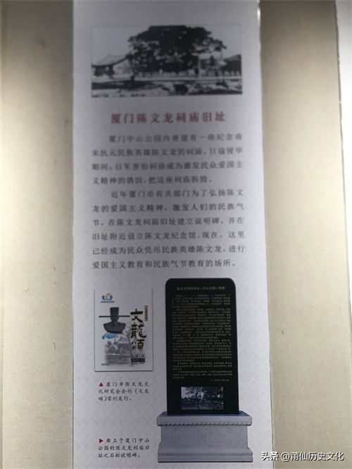 陈文龙是南宋末年抗元民族英雄,在我国民族英雄谱上,南宋文天祥、陈文龙、陆秀夫、张世杰、陈瓒等, 都是其中出类拔萃的代表人物。他们的气节“ 如水行地, 如日在空’,深深扎根在人们的心中, 成为许多有志之士学习的楷模。陈文龙与文天祥“隆名并峙,同为一代忠贞”(林则徐联语)而彪炳史册。陈文龙爱国、忠诚、节义的人格情操是中华民族宝贵的精神财富,历朝历代名人雅士为其留下大量的诗歌、散文。