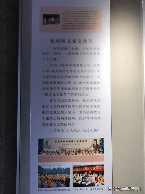 南宋末,兴化人郑钺《文龙遗事》载:“国事去矣,文龙竟不屈死杭,文公(天祥)竟不屈死燕。宋三百年其未造也,江闽两大魁出,俱以节死,呜呼”。两人皆胪传第一人,亦足收宋300年养士之功矣。清代诗人袁枚曾言:“赖有岳于双少保,人间始觉重西湖”。而此两句,或许应当添上“为有陈于两忠肃,人间更觉重西湖”之句,体现西湖的精忠文化。