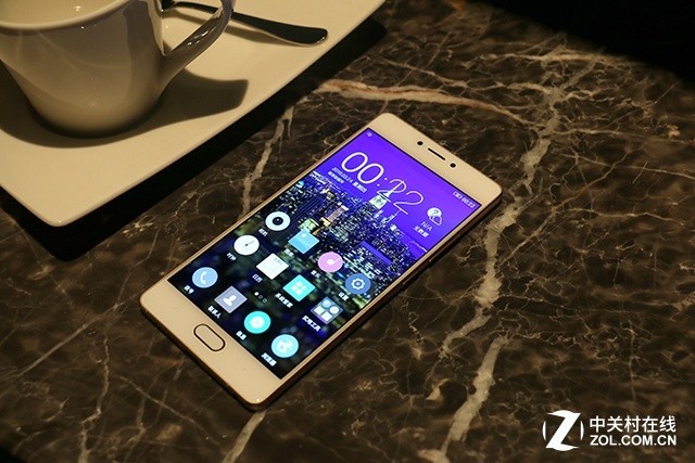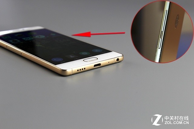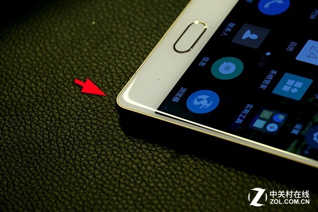 金立S8正面虽为2.5D玻璃,但在玻璃边缘并非其他机型那样直接过渡至边框,而是稍稍“嵌”入金属边框一点,但上手摸过仍然具有2.5D玻璃的顺滑,嵌入的深度颇为巧妙,拿捏得当。这样的设计有一大好处,在手机跌落时边框可以替代玻璃先着地,最大程度保护了正面玻璃面板。