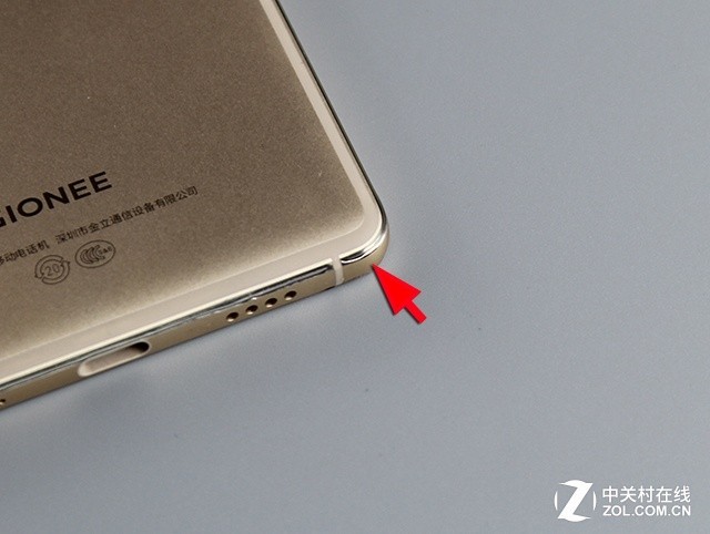 金立S8侧边被两道高光倒角包围,他们的出现大幅压缩了手机的“视觉厚度”,这让本来就很纤薄的7mm机身看起来更薄。同样地,仔细上手观赏你在这两道高光倒角上面也可以发现该机设计的另一大惊人细节。