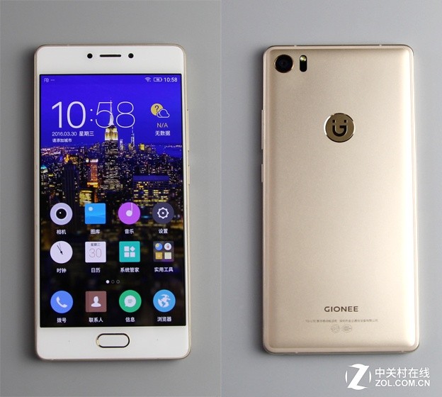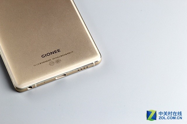 机身中央是金立于MWC 2016上发布的全新品牌LOGO,笑脸般的样子向消费者传达着“科技·悦生活”的品牌理念。机身最下方是金立的文字LOGO和一些信息标识。