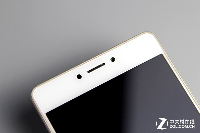 金立S8正面呈对称式设计,在机身正面是一块5.5英寸1080P屏幕,顶部左右圆形开孔分别为光线感应器和800万像素前置摄像头,中间是听筒。对于跟我一样有强迫症的人来说,正面完全对称的视觉设计看起来实在是太舒服。