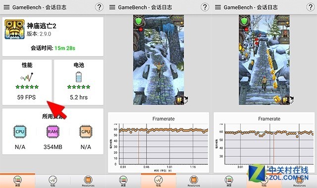 另一款游戏神庙逃亡2为跑酷类游戏,稍有操作延迟、画面卡顿就需要重新开始,对手机运行时的流畅度要求很高。金立S8在运行该游戏的15分钟内,平均帧数能达到59FPS,接近满帧,极为流畅。