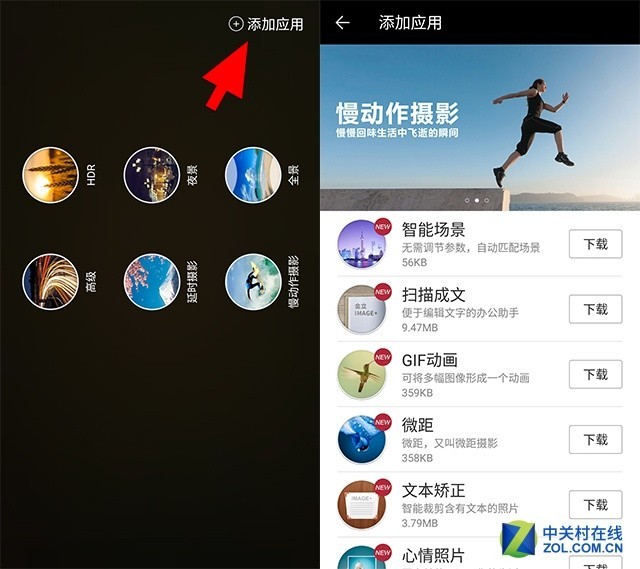 除了以上自带的模式外,还可点击右上角的“添加”到商城中选择更多扩展功能。截至此篇评测撰写时,官方已经提供了包括扫描成文、GIF、心情照片、智能扫码等近十种扩展功能,均为免费下载。