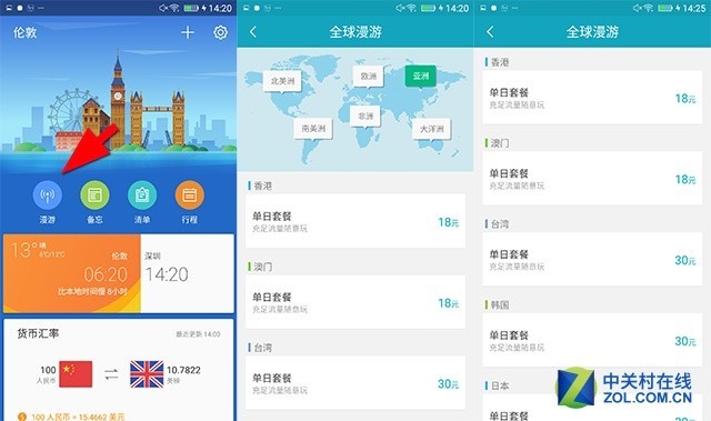 在出国助手中,能够发现金立为用户准备了支持各个洲的流量套餐,比如香港单日套餐仅需要18元,台湾、日本、泰国、新加坡等均为30元,覆盖了几乎所有亚洲热门旅游圣地;欧洲的意大利、法国、希腊等也均为30元一日。