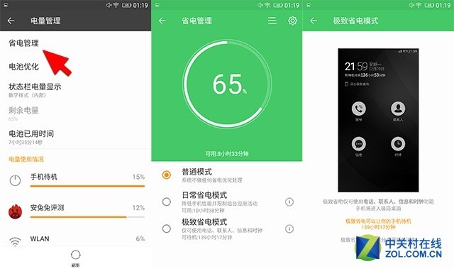 最后,金立S8在“省电管理”中为用户提供三种模式:普通模式、日常省电模式、极致省电模式。在第三项极致省电模式下,可以说手机变回了功能机,救急非常好使。省电模式我认为也可以算作续航上的加分项,在电量较低时用户可以选择开启,大幅延长续航时间,以备不时之需。
