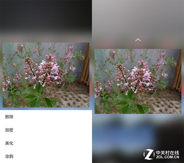 在相册中,你可以通过用力按压照片来预览照片,不需要再挨个点击打开查看。上面指纹部分我们曾提到私密相册,按压照片上滑即可看到“加密”项,点击加密照片便被移至私密相册中。