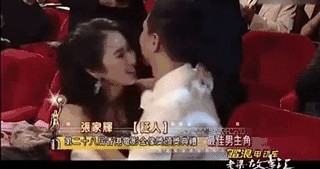 颁奖典礼上,张家辉获知拿奖,激动地抱着关咏荷久久不撒手。