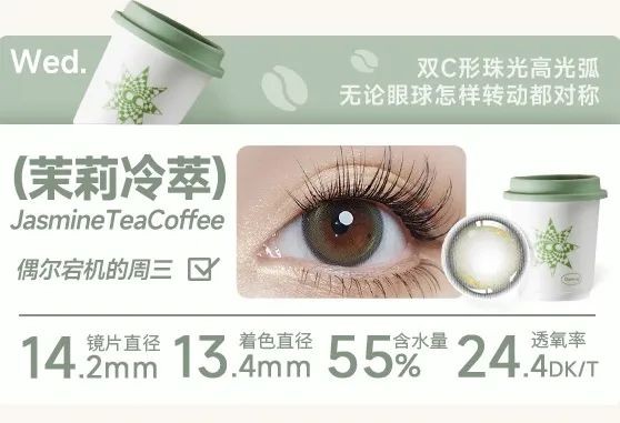 除了这些之外,还有EYEPONY「月晕灰」打造出微混血感的高光玻璃瞳;GLAM-UP咖啡日抛系列中的「茉莉冷萃」,棕绿色镜片也让你轻松拿捏异域混血感!更多心仪的美瞳和隐性眼睛,就等你打开小程序来挑选了!