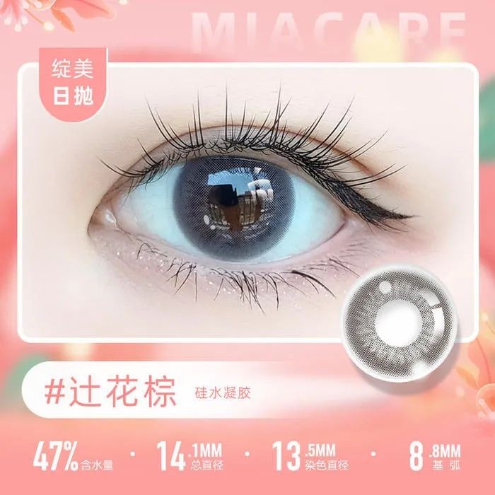 另一款「辻花棕」用灰棕的颜色,让双眸在水光中更加有神,扩瞳非常自然,日常百搭又很清透,属实是日常减龄的必备款!