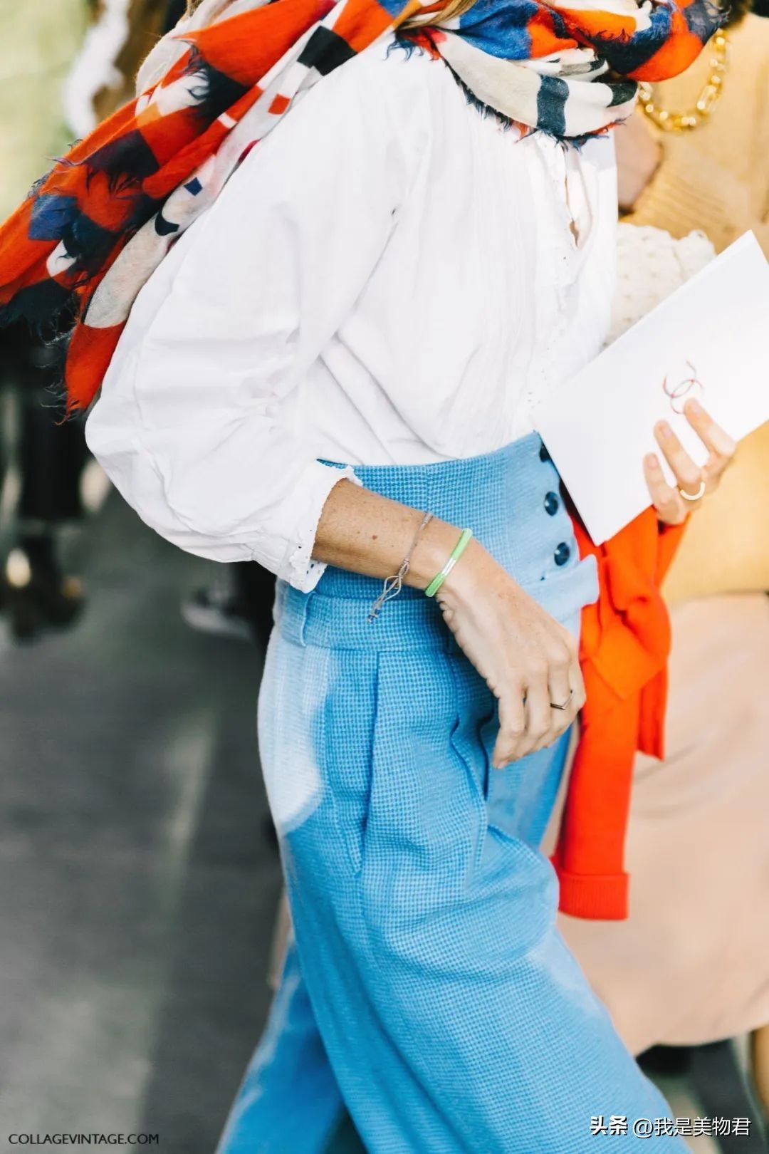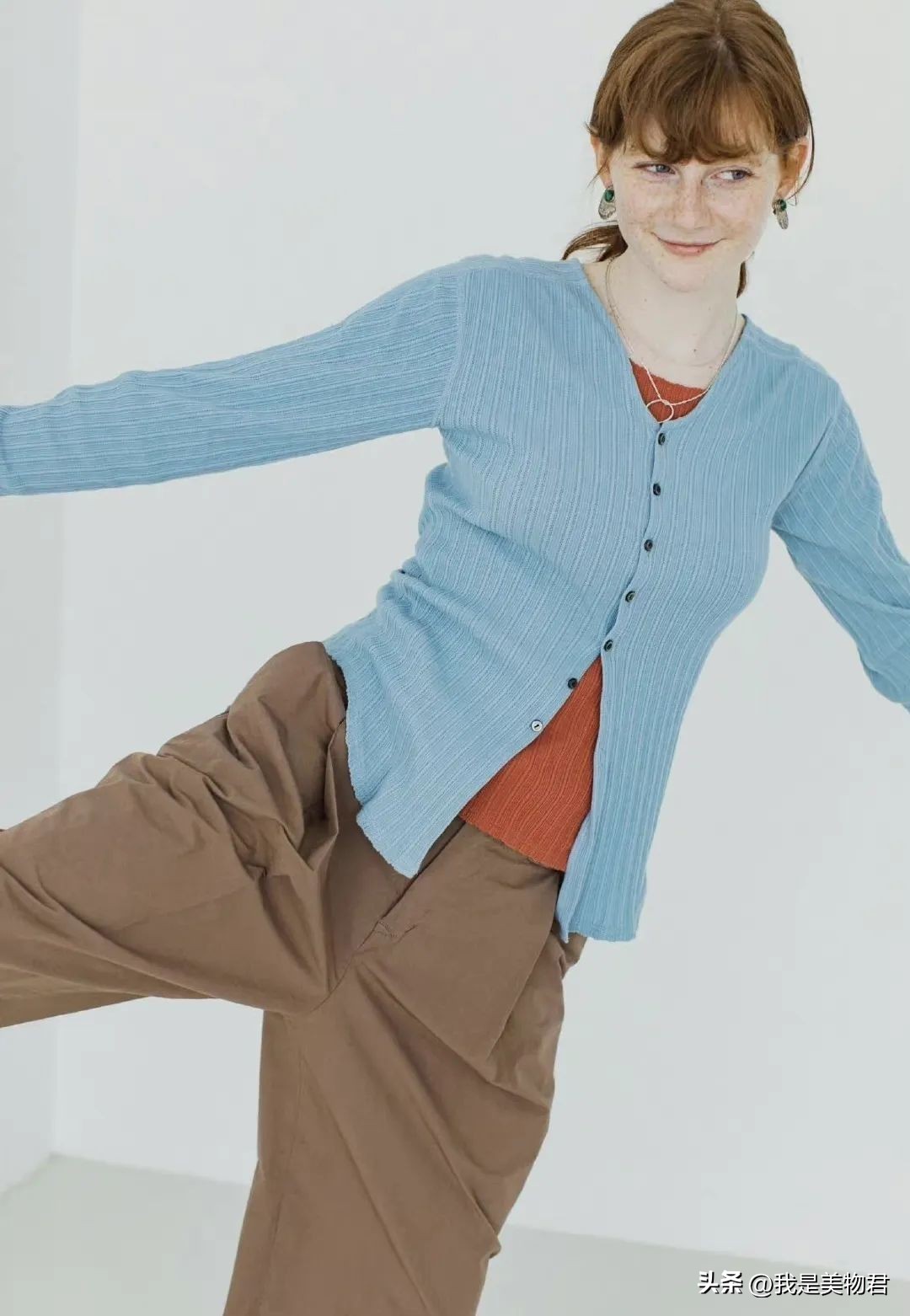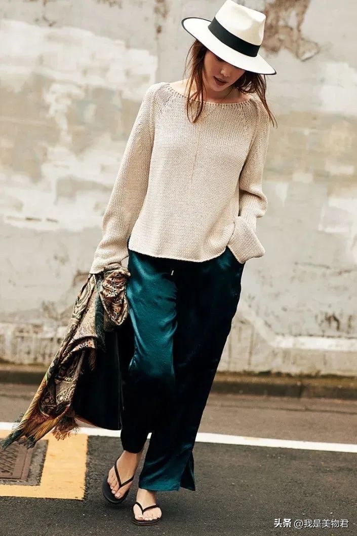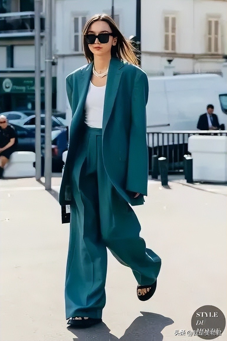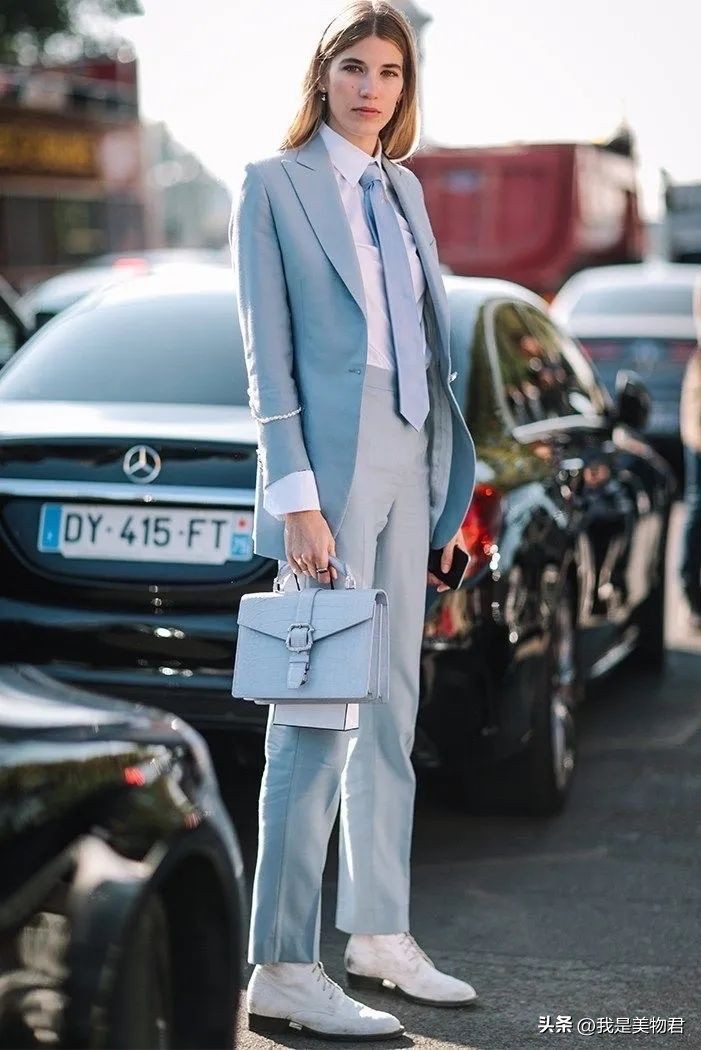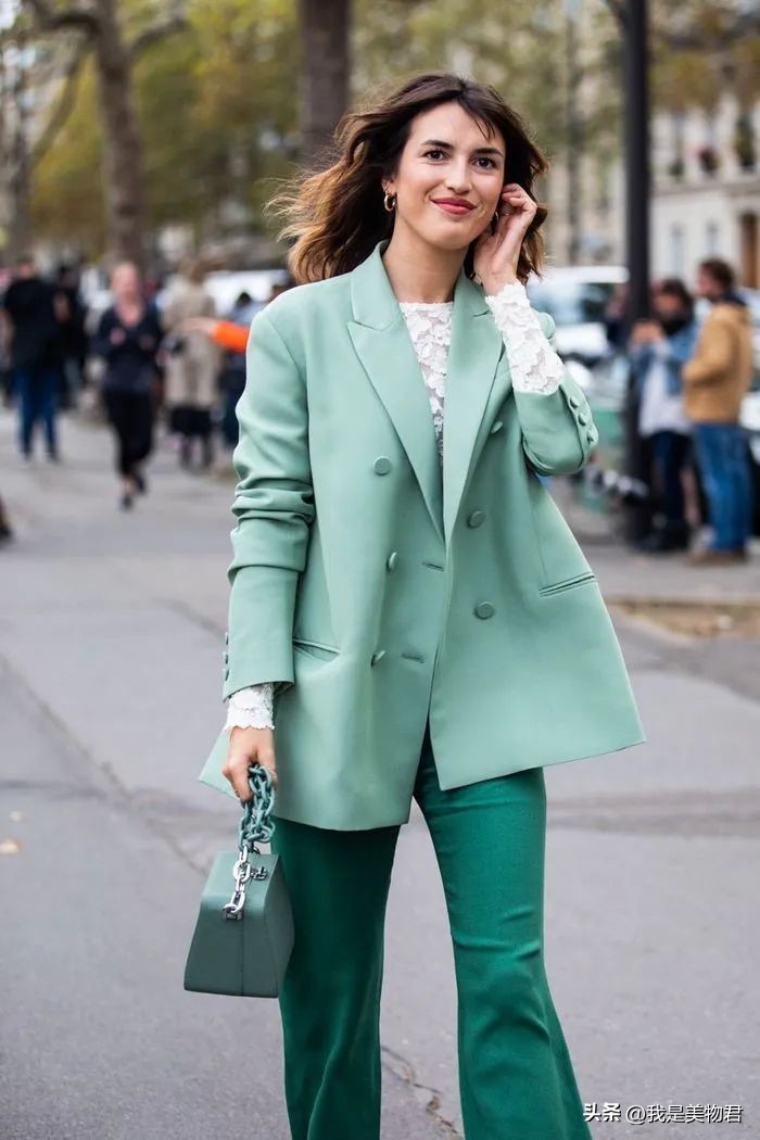 除了不同饱和度以外,最好在材质上也区分开,这样才能凸显单品与单品之间的时髦层次感。
