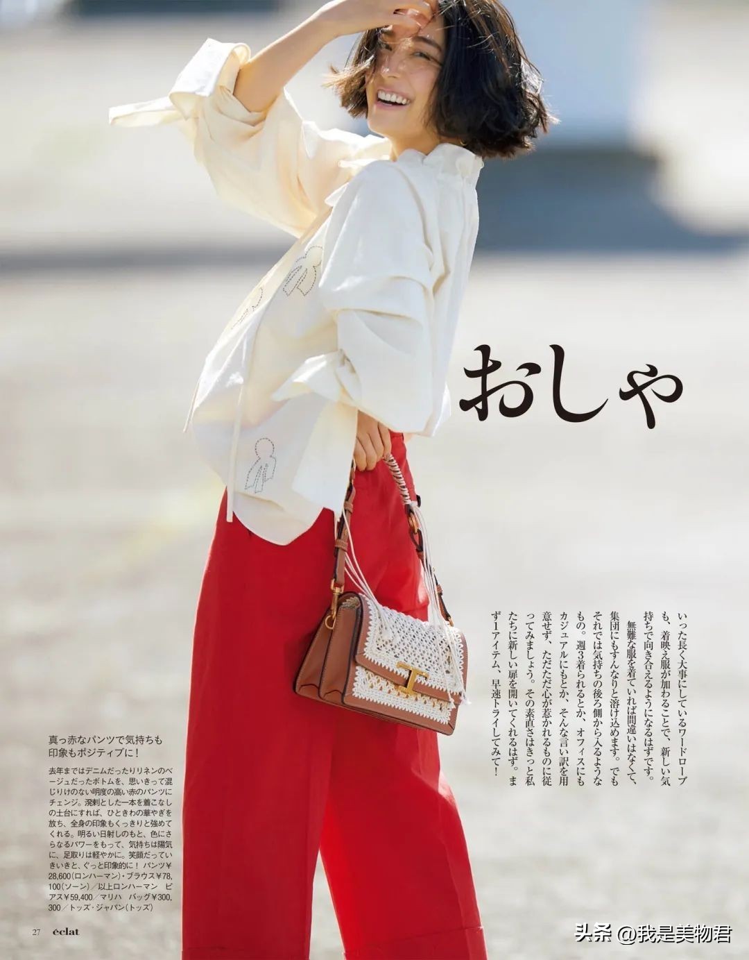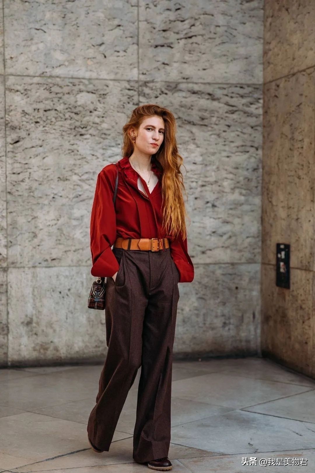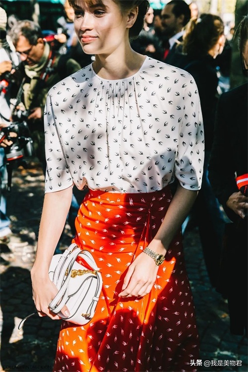 在搭配上,只要是浅色调的上衣,用以分割跟红色下装的差异,在大概率上,红色都能用的和谐又惊艳。