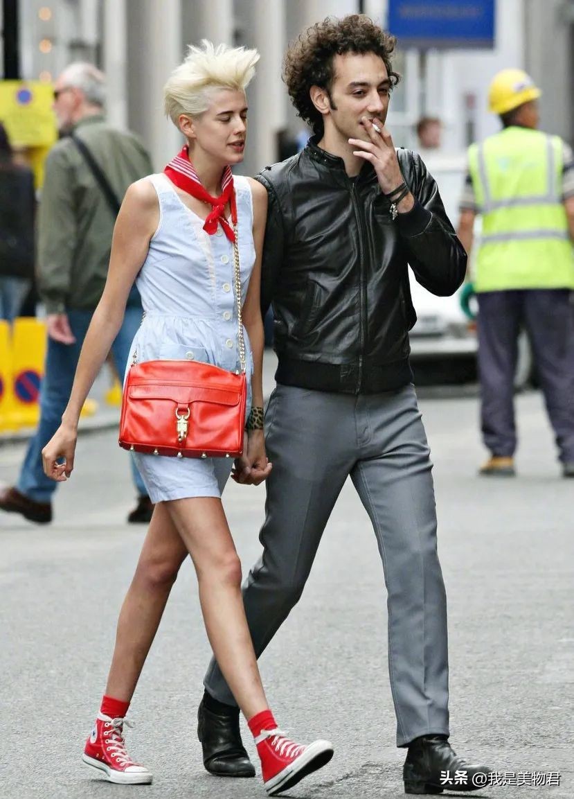 如果觉得黑白蓝单调了点,也可以少许的添加一点彩色,既能提亮整套look,又很点睛个性。