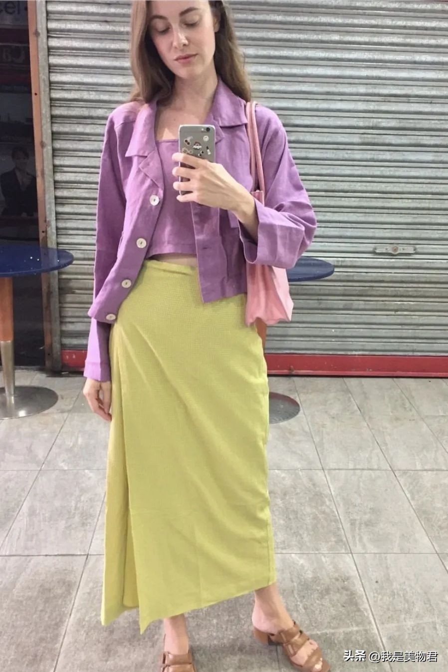 很多人不知道,紫色其实跟黄色很搭,一个清冷一个明亮,一个成熟一个减龄,矛盾的反差感,有时候反而可以为女性提供美的张力。