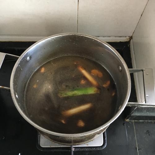 香料:八角25克、三奈10克、香果15克、小茴15克、香叶15克、草果10克、白蔻10克。