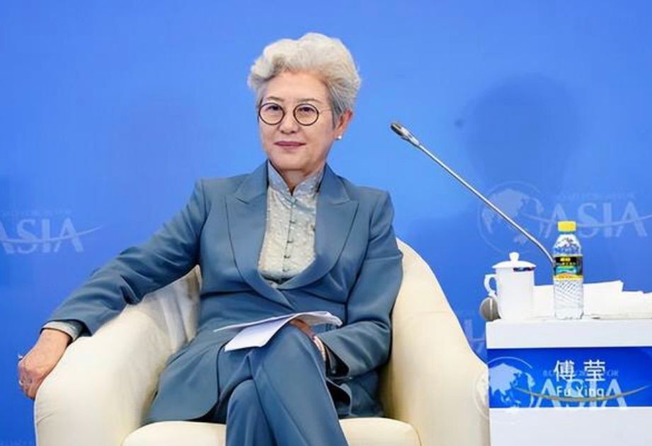 69岁傅莹风采依旧,一头银发配优雅穿搭真大气,不愧是最美外交官