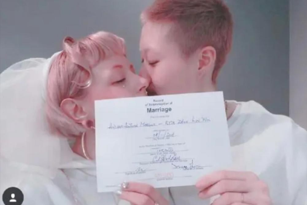 吴卓林高呼着“Love wins”,与Andi步入婚姻的殿堂,并晒出两人的结婚证,