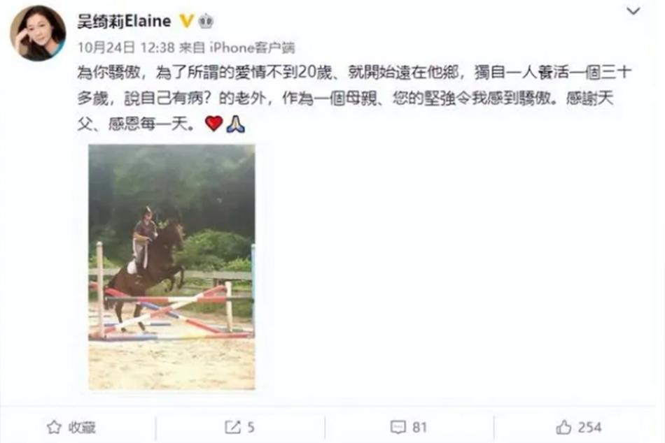 于是,在刚刚出了月子后,吴绮莉便马不停蹄地想要去工作,