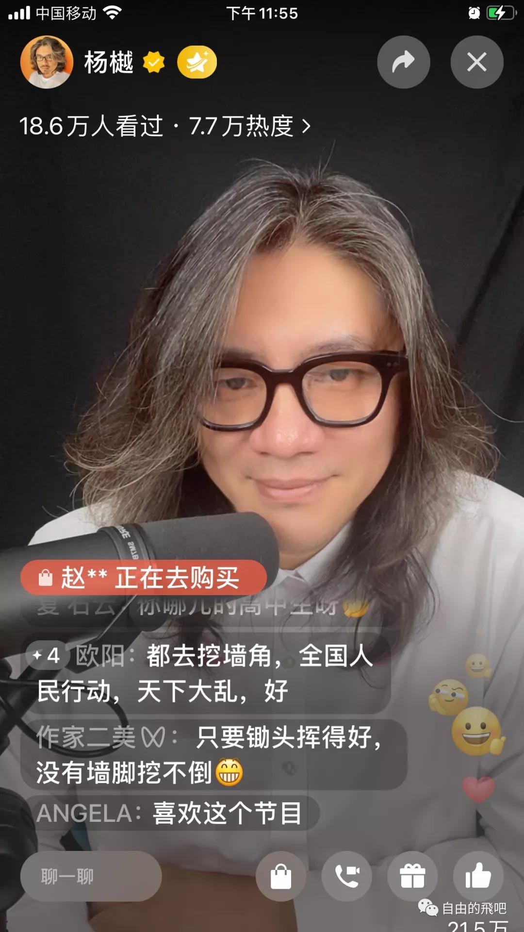 我曾自我调侃、讽喻或自夸:我是重度文青患者,不治。看杨樾的直播并有点迷的感觉,再次证明我的自嘲是多么准确。
