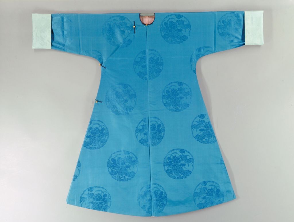 图5、清道光 月白色团荷花暗花绸女衬衣