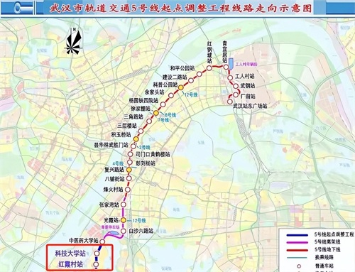今日上午8时,武汉轨道交通5号线调整工程,正式开通试运营,与5号线贯通,按照单一交路运行。