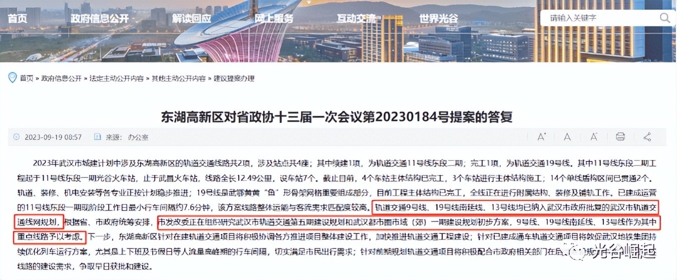 此外,9月19日,东湖高新区官网发布了《东湖高新区对省政协十三届一次会议第20230184号提案的答复》。