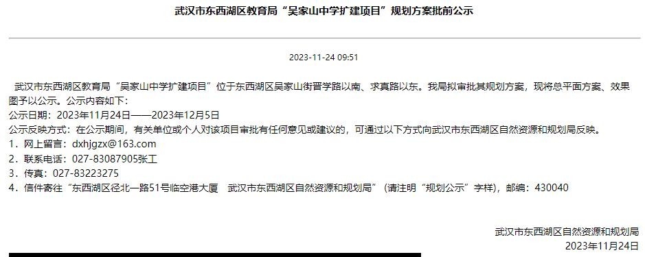 八、东西湖区吴家山中学扩建项目规划方案公示