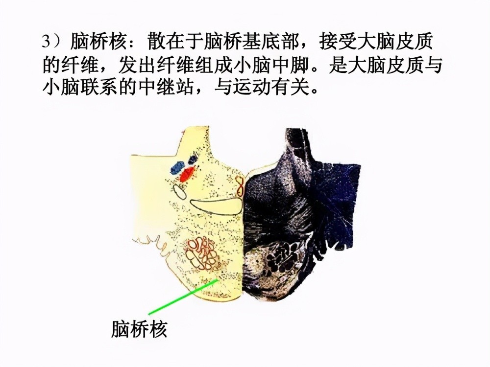 灵长类以脑桥核发挥智能,鸟类的则很小,用类似结构的内侧螺旋核在皮质和小脑间传递信息来计划复杂的行为。