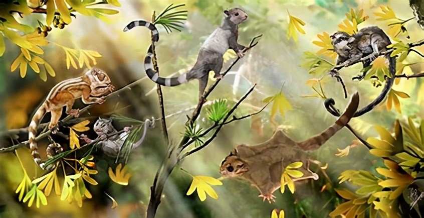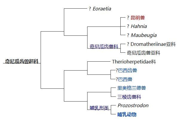 与哺乳动物关系极近的三棱齿兽科,生活于晚三叠纪到中侏罗纪,为小型肉食性或食虫性真犬齿兽类。