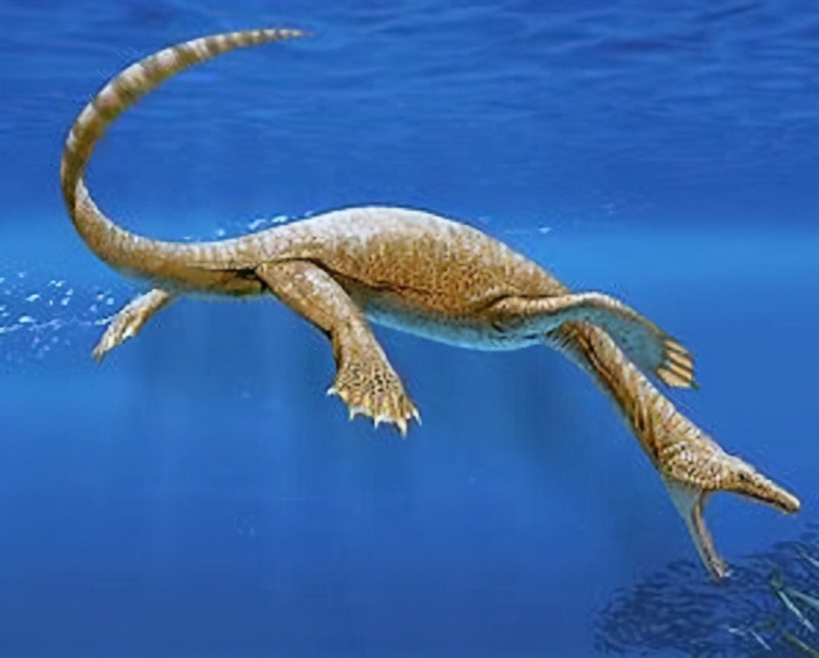 生活于三叠纪晚期的楯齿龙目的楯齿属,在外形上类似于海生龟鳖。