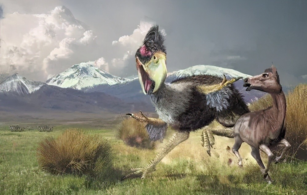 白垩纪——第三纪大灭绝事件之后,历史则逐渐再一次返回到了古生代晚期的状态,合弓纲又重新兴起。恐龙后裔的大型食肉鸟类在新生代也曾零星出现过一些较有战斗力的种类,如恐鹤科中的泰坦鸟,也曾在数百万年前称霸于美洲大陆,能够捕食各种中小型哺乳动物,再比如灭绝于18世纪的新西兰的恐鸟和和17世纪以前存在于马达加斯加的象鸟。