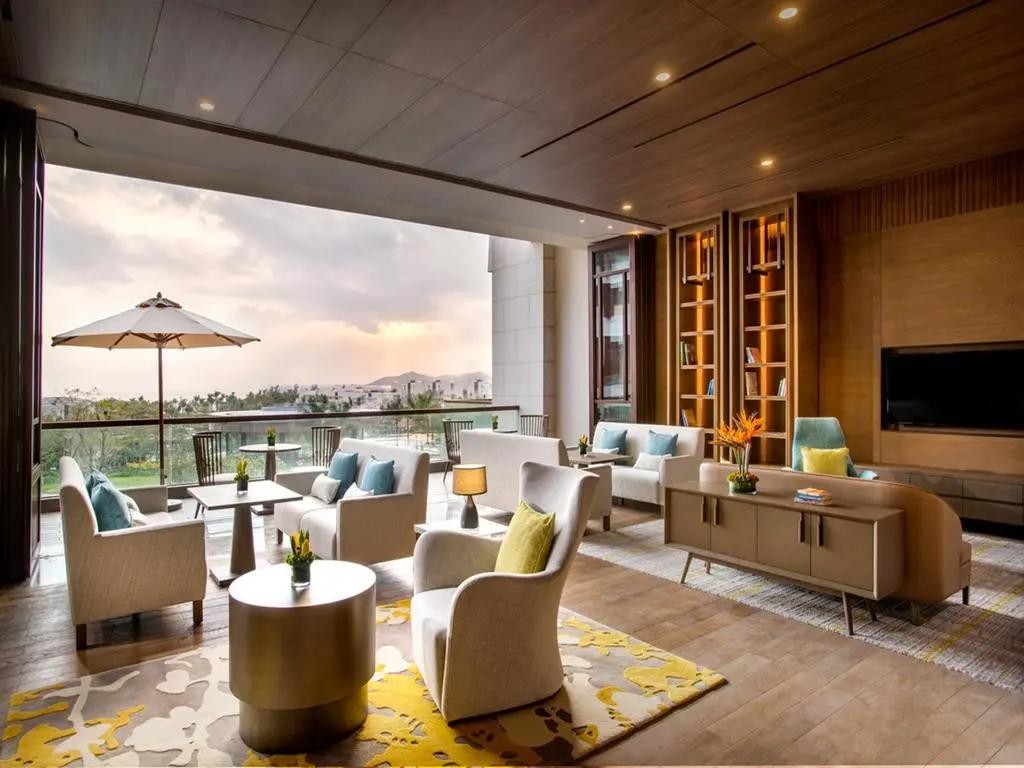 酒店由国际知名设计公司Gensler匠心打造,将时尚现代的设施与科技巧妙结合,打造全方位“智能型”度假酒店。建筑顺乎自然;外观呈精致雅白,安放在大海之畔、园林之中,以自然低调彰显奢华内涵。大堂巨型LED灯饰为国内罕见异形灯阵,从五面环绕打造互动视觉盛宴。
