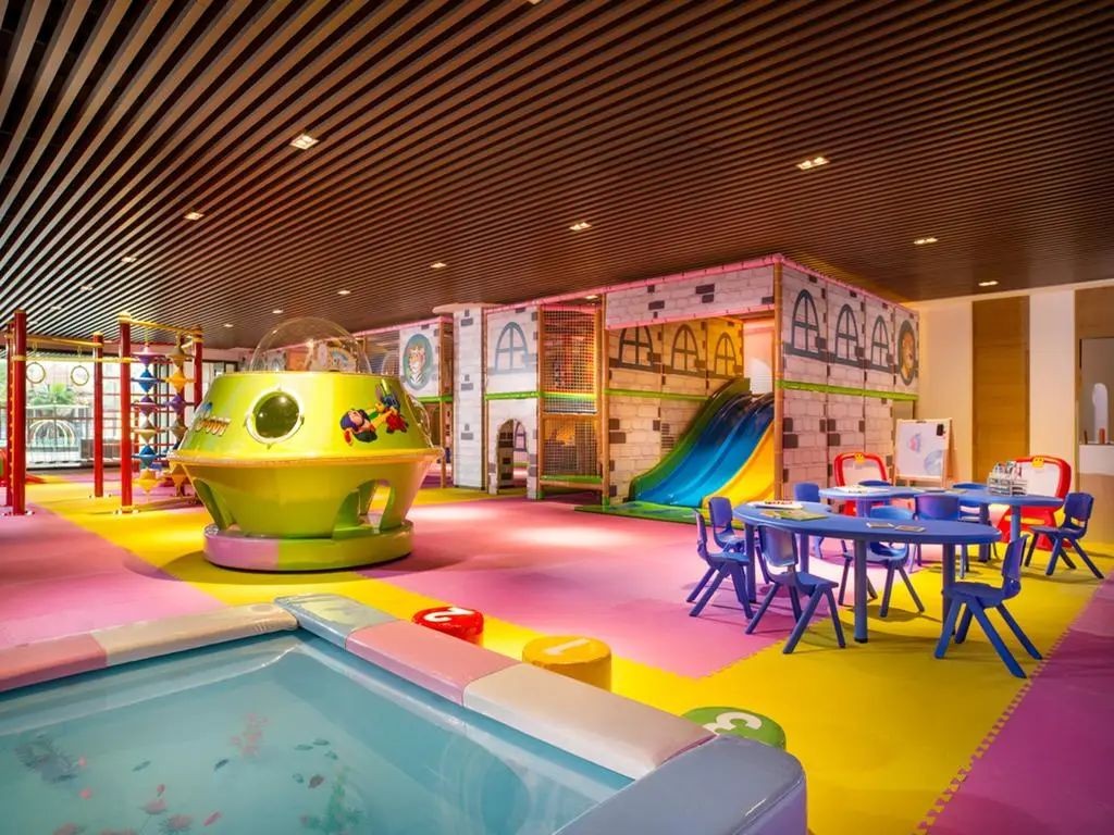 3000平方米的七色幻彩泳池打破固有蓝色传统,赋予运动新的激情和定义。9米高的水上互动综合设施“海盗船”,650平方米大型室内儿童俱乐部建有缤纷淘气堡、勇士拓展营、漂移碰碰车、激情攀岩区、电子水族馆、亲子互动区六大游玩区,为您和家人开启炫酷假期之旅!