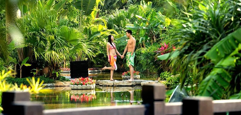 酒店近两万多平方米私家园林,属热带主题园林,情人亭、情人桥等特色景物点缀其间。