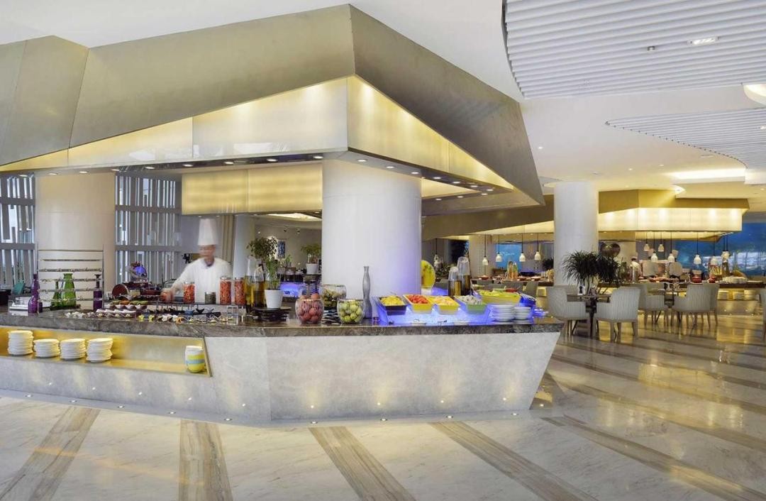 海蓝海底餐厅将为您带来极致浪漫的用餐体验。超大幅玻璃幕墙将海底世界的斑斓景观尽显眼前,各色热带鱼穿梭游弋为您带来犹如置身海洋中心的梦幻体验。