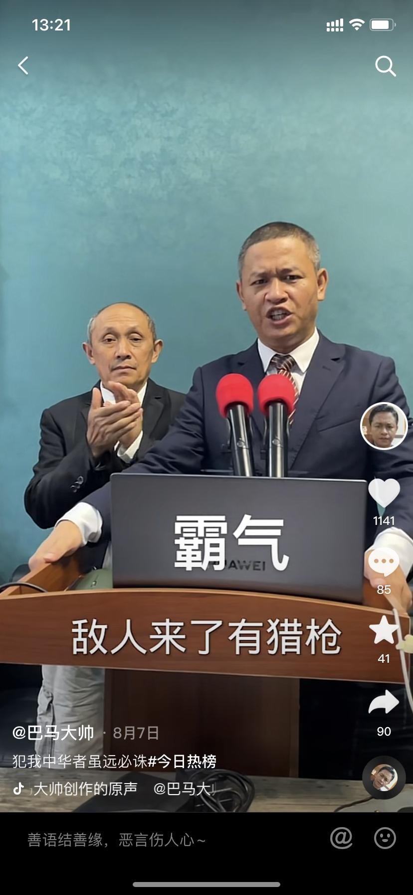 2019年10月26日,肖基国在抖音上开创了一个名为@巴马大帅的账号,发布的第一条短视频就获得了14.6万的点赞。很显然,肖基国又靠着奥巴马圈粉了,视频中,他身着一身黑色大衣,说着一口英语,明显又在模仿奥巴马。