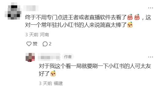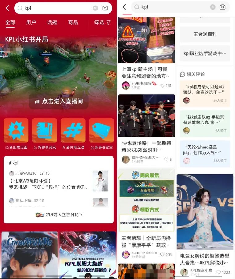难怪在KPL和小红书合作后,许多评论都在说“终于不用切别的APP了”“对于看一局就要刷一下小红书的人太友好了”。
