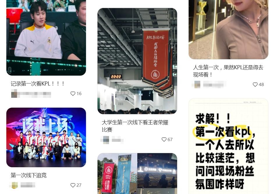 举个不太恰当的例子,在小红书看电竞比赛,就像在现场架设了全景机位,从小到大、从里到外,不放过任何有趣的细节,堪称是KPL的生态宇宙。