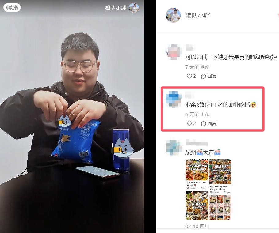 重庆狼队的选手小胖则选择了吃播赛道,别看布景道具主打极简,音效却是实打实的ASMR级别,被调侃是“业余打王者的职业吃播选手”。