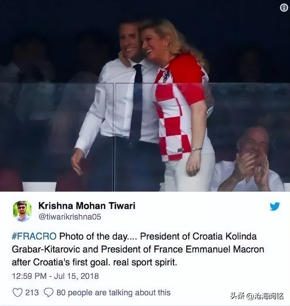 而她自己也经常穿着克罗地亚的球衣,在现场积极地为球员鼓劲。
